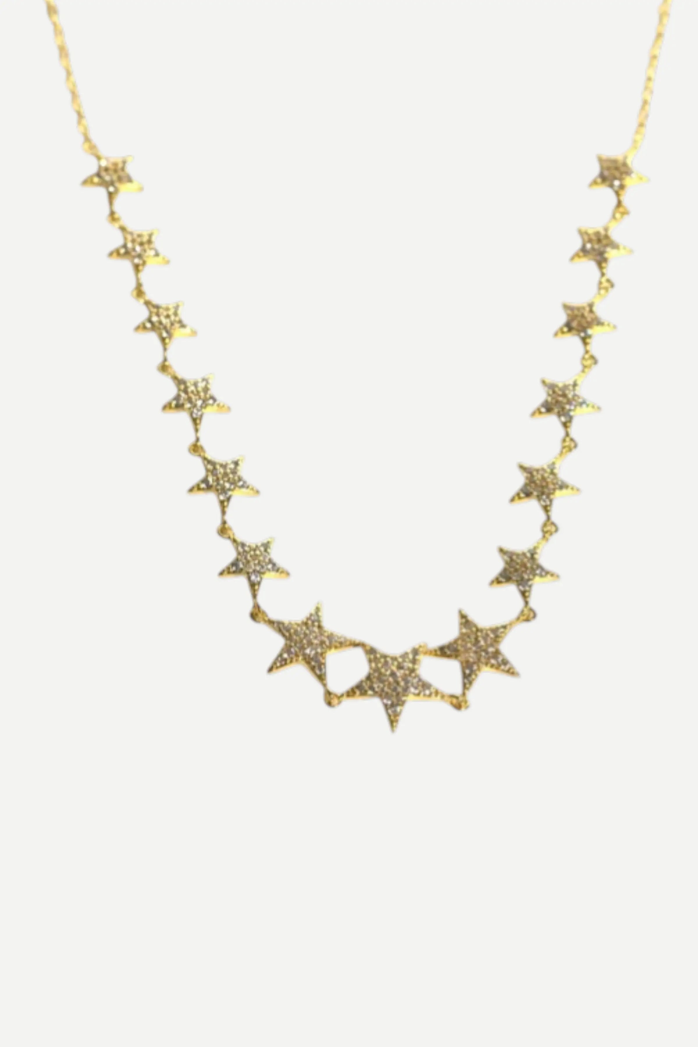Introducing our luxurious Walk of Fame Chain. Made with 18K gold plated sterling silver, this elegant chain features stunning diamond cz stone stars, creating a sense of glamorous beauty. With a length of 16" and a 2" extender, this chain is perfect for adding a touch of fame to any outfit.