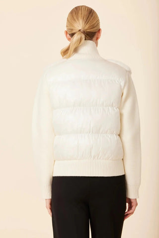 Dolce Cabo Faux Fur, Vegan Leather Trim, Quilted Back Jacket, Creme
