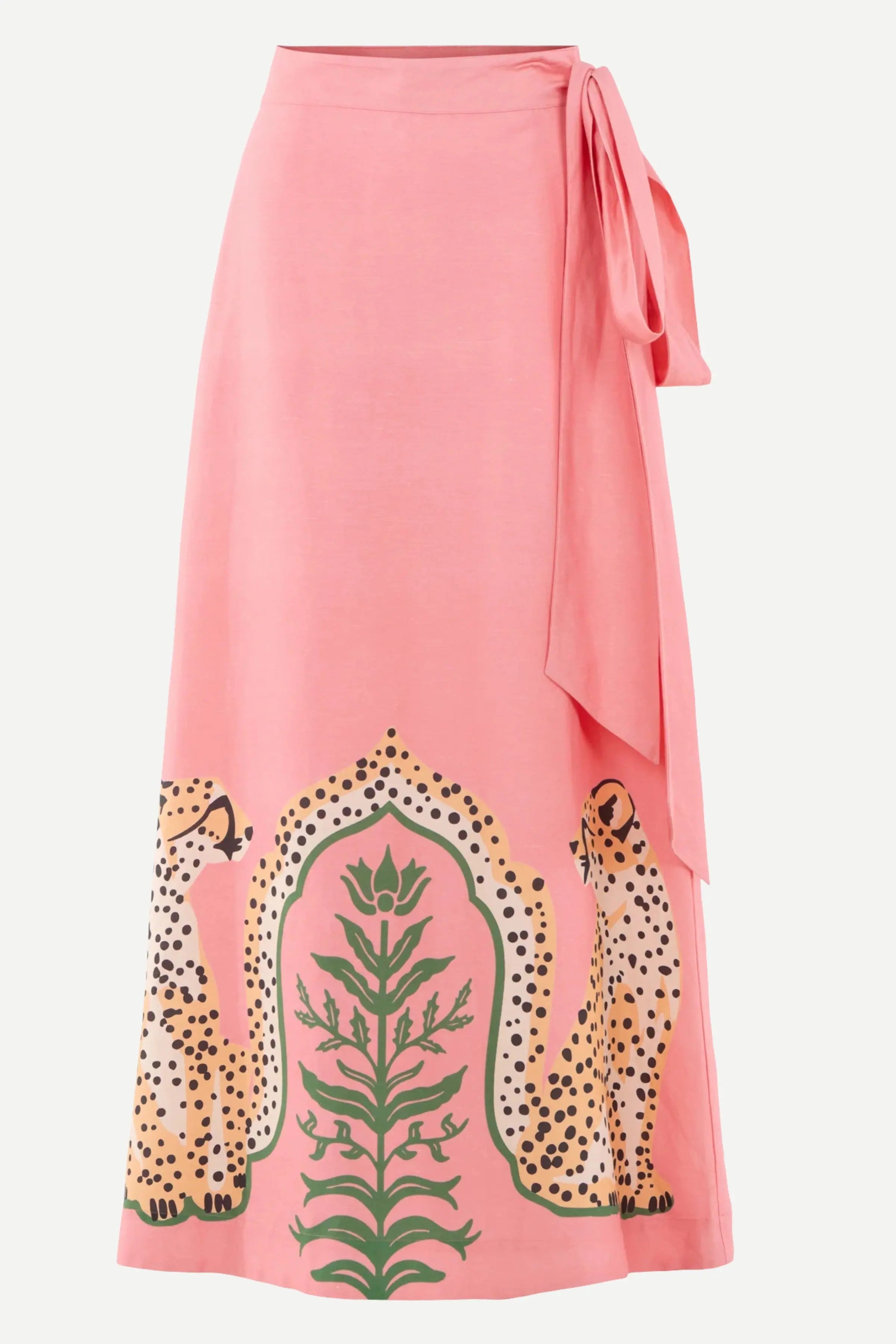 Pre-tied tacked side bow Side zip closure High waisted silhouette 70% Rayon / 30% Linen Lining: 100% Polyester
