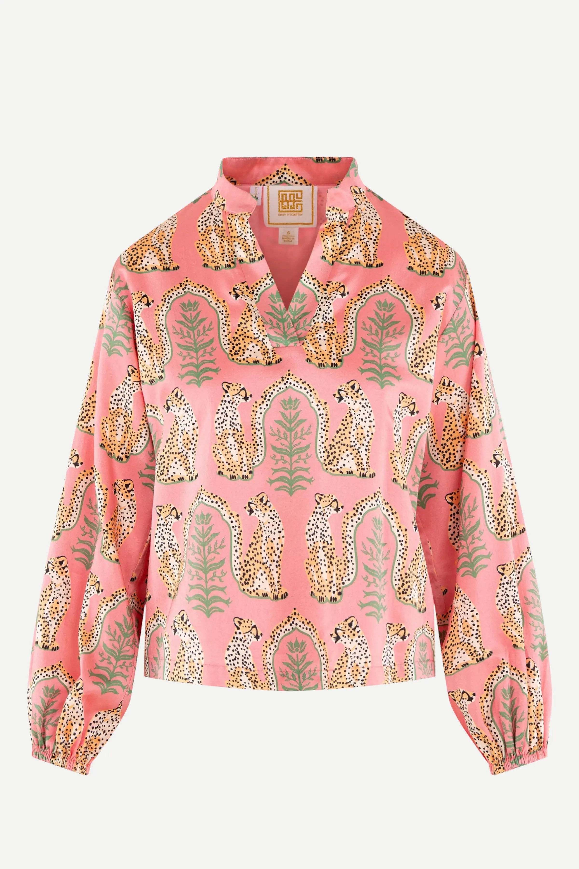 Notched neckline Blouson sleeves Loose fitting silhouette 59% Silk / 41% Cotton Lining: 100% Polyester