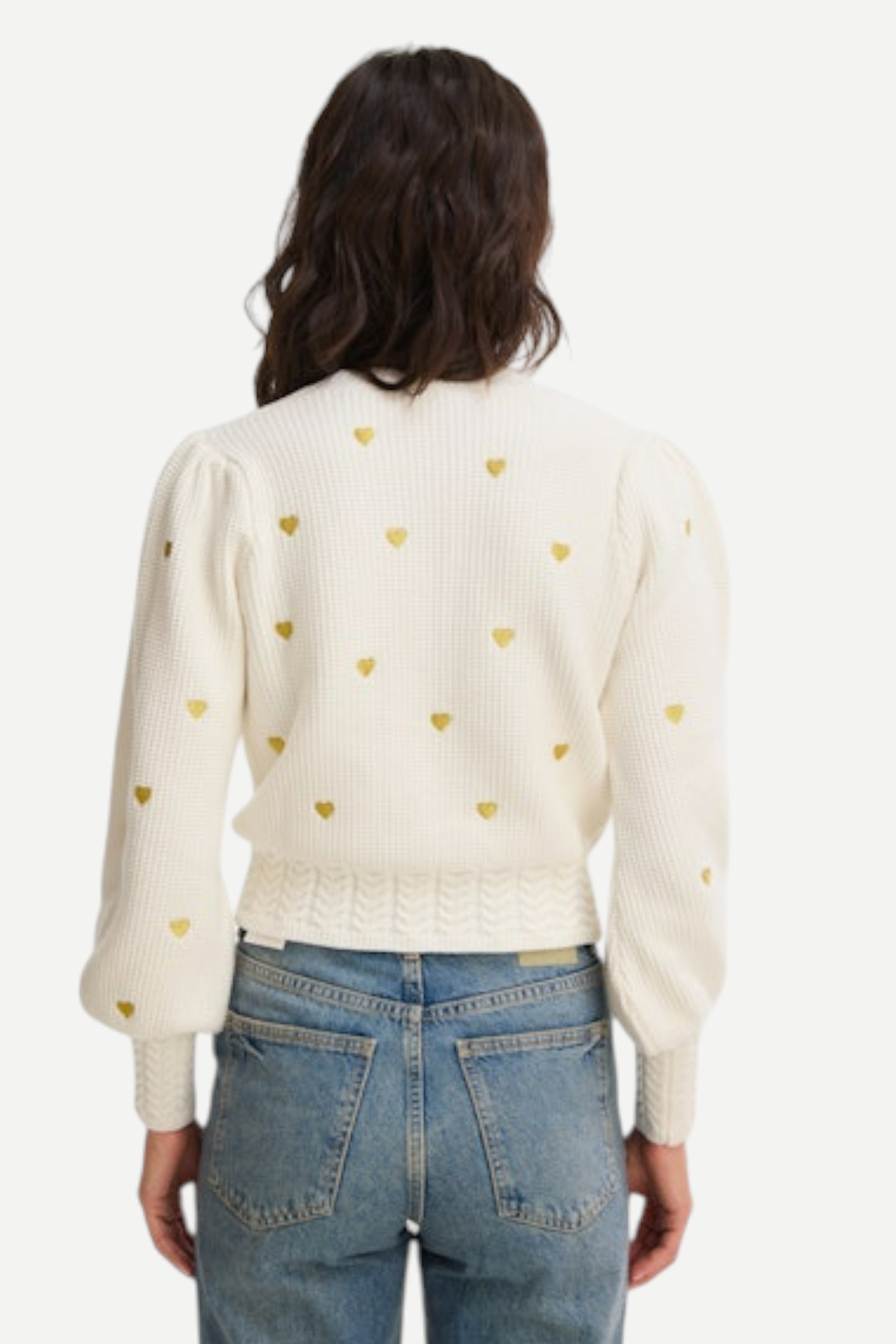 Allison Gold Hearts Piper Cardigan, Ivory/Gold