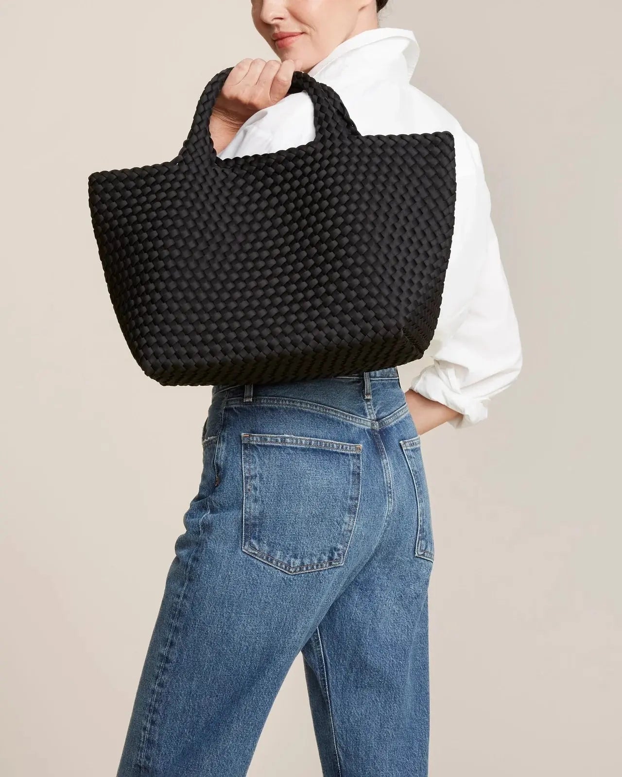 • Handwoven neoprene medium tote bag