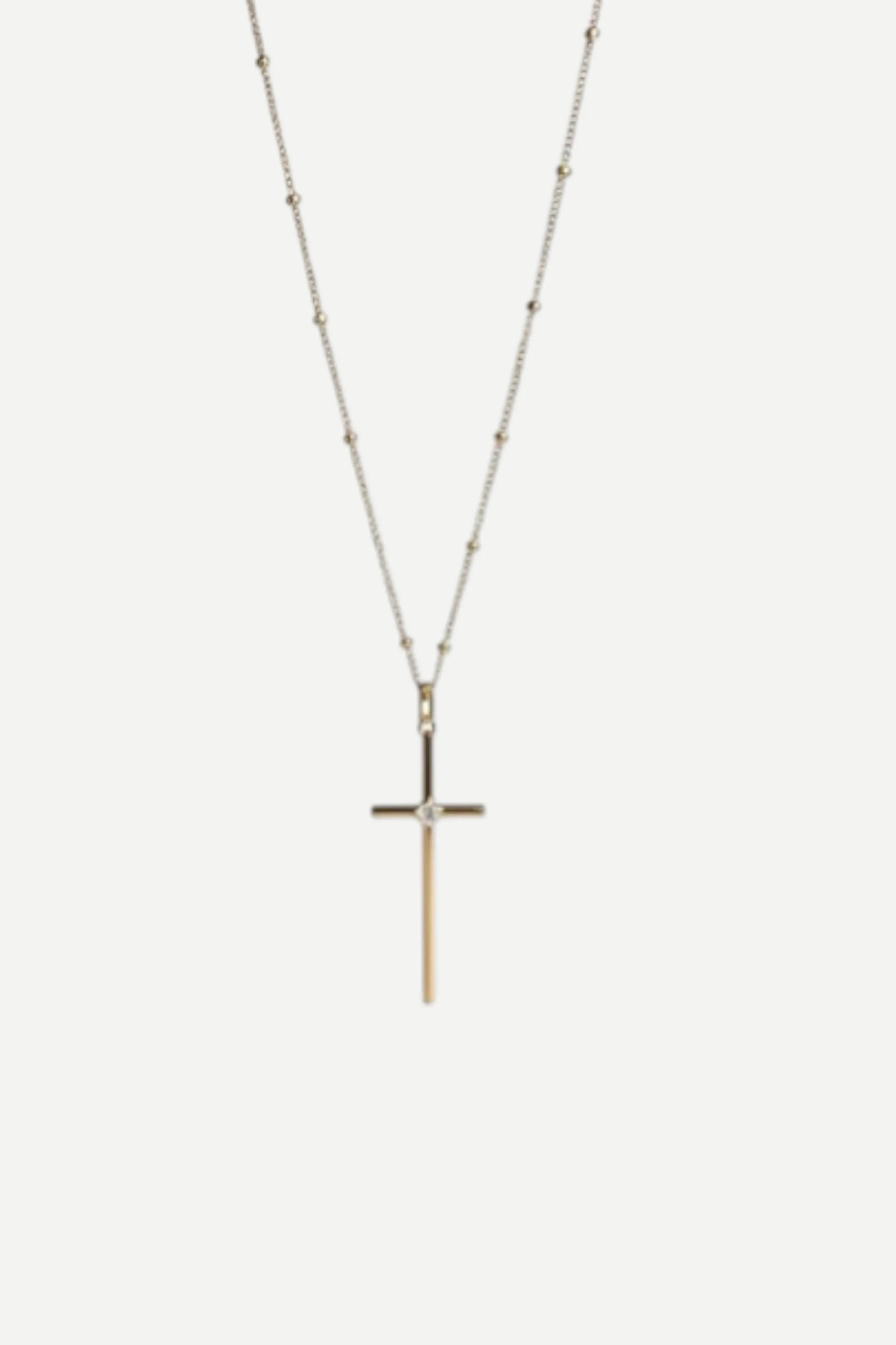 The Latin Cross Chain is the perfect necklace to show your faith in style. This beautiful piece boasts a 14K Gold Filled Satellite Chain that is 16" long with a 2" extender. The cross charm features a stunning CZ diamond that is sure to sparkle. Pendant is removable for a simple link chain look.