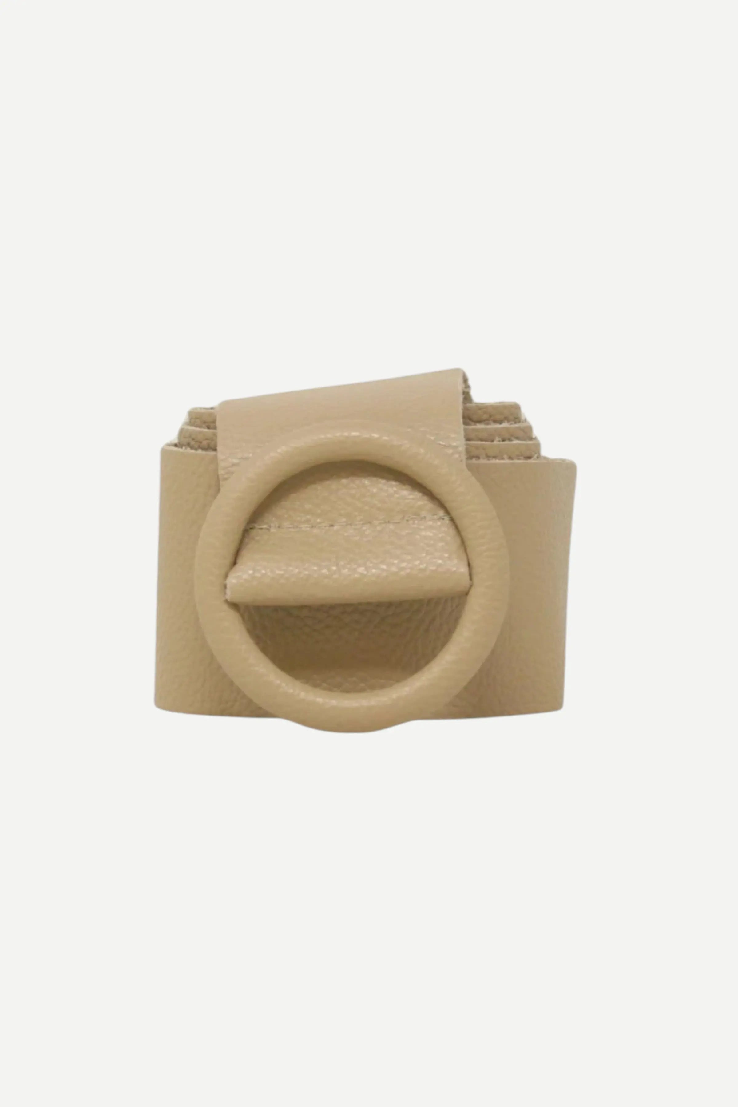 Crafted from genuine leather with a contemporary circular buckle detail, this belt offers a modern twist on classic design. Its sleek finish and high-quality materials make it an essential accessory for boutiques seeking versatile, stylish pieces. Perfect for everyday wear or dressing up any look.