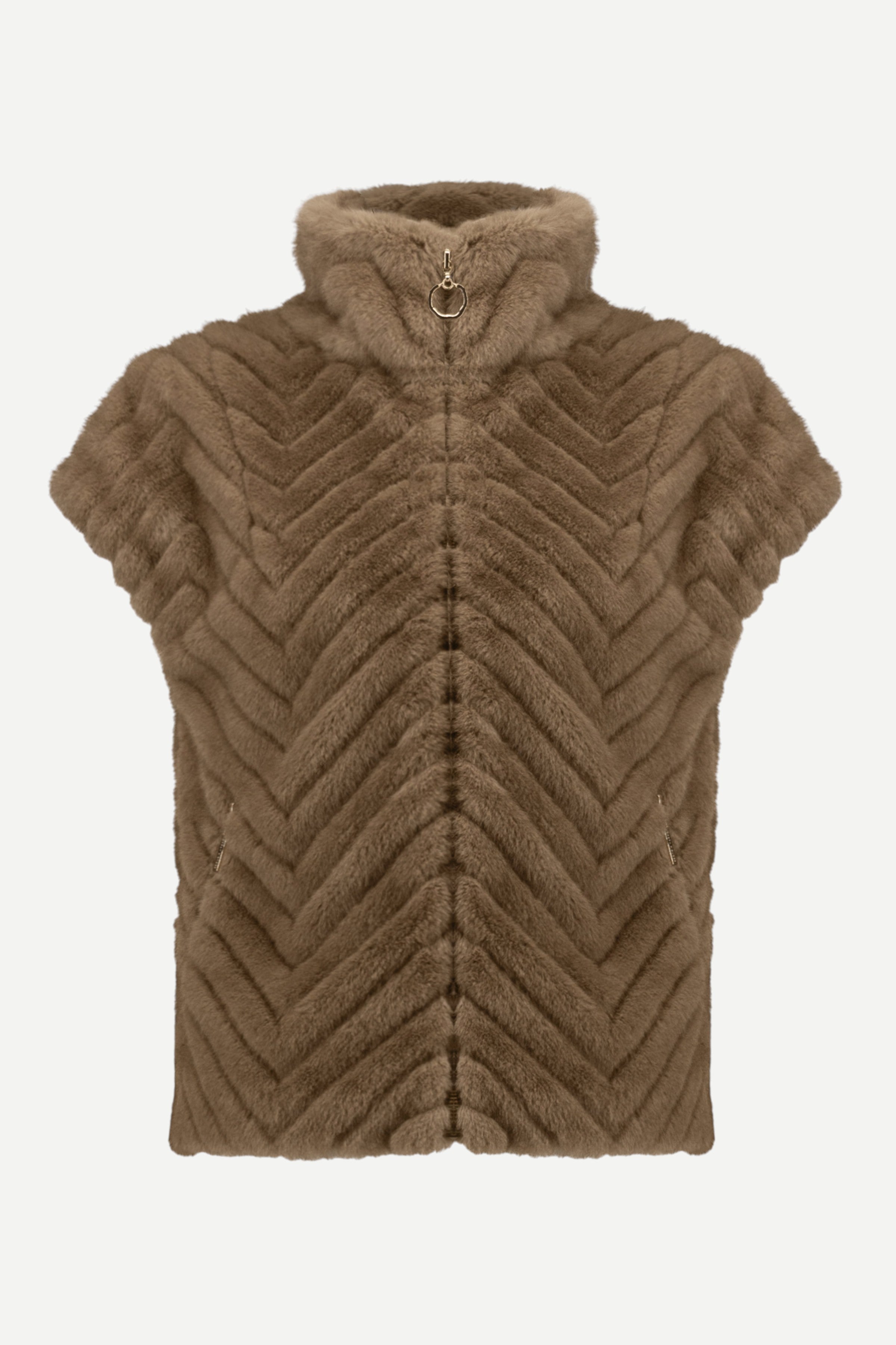 Joseph Ribkoff Chevron Faux Fur Mock Neck Vest, Mink
