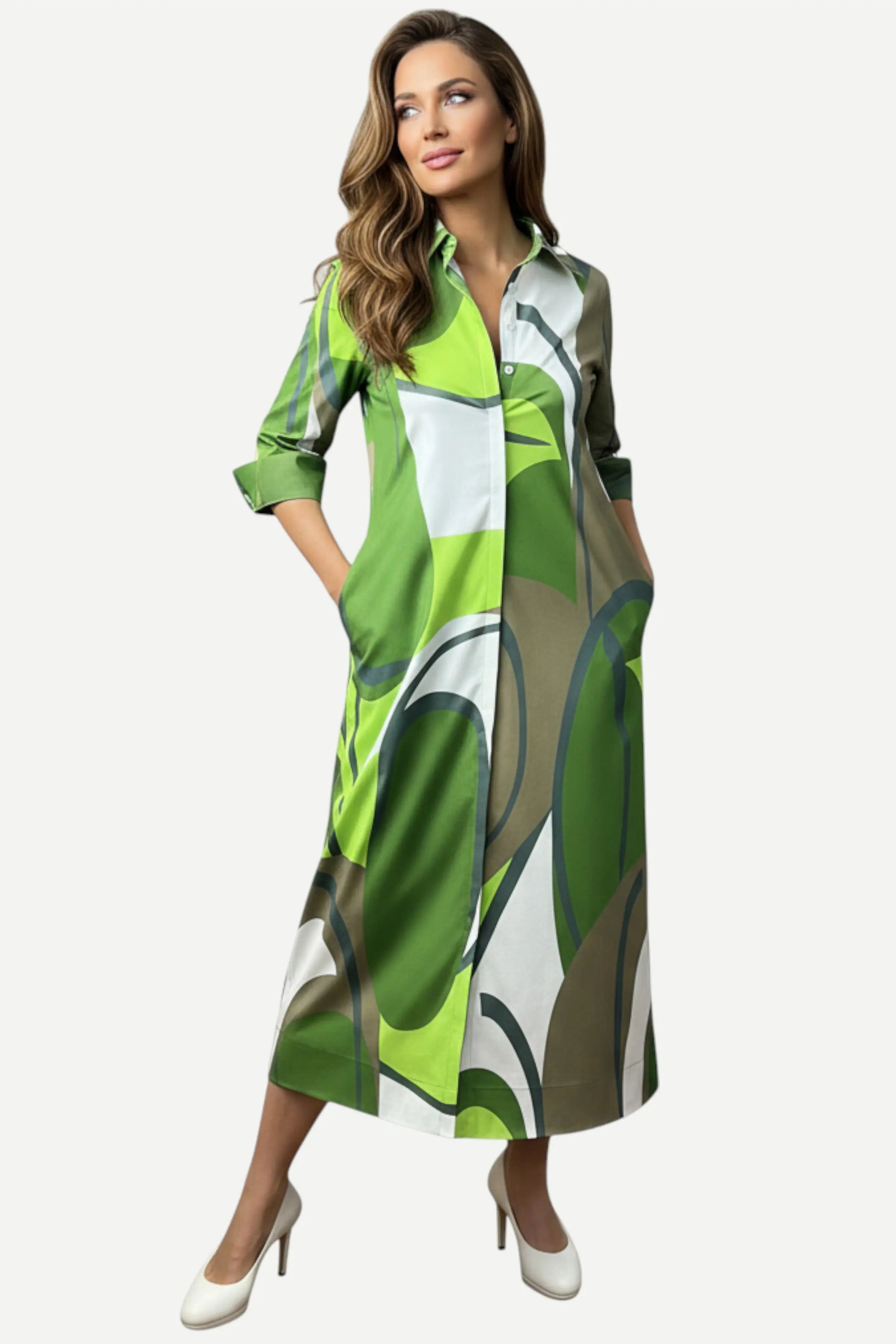 Perlavera Nico 3/4 Sleeve, Missy Fit Maxi Dress, Safari Calypso