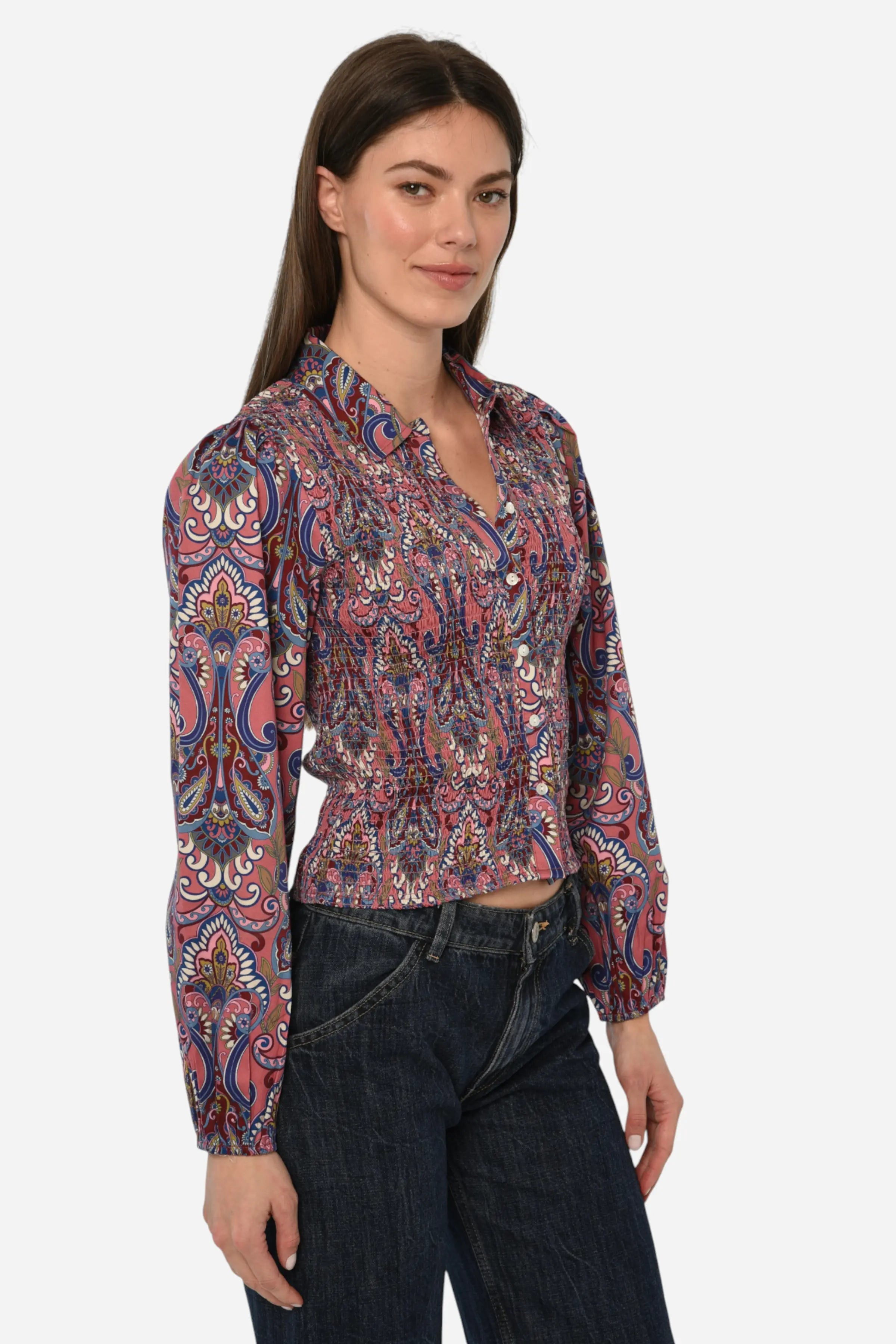 Welcome back the Sohan Top, now offered in our cotton sateen in the Painted Lady Print. This super comfortable top features a fully smocked front and back bodice, softly gathered sleeves with elasticated openings, and a collared neckline. The center-front placket is fully functional and finished with delicate shell buttons. Pair this top with our Romeo Denim Mini Skirt for a head-to-toe Love the Label look.
