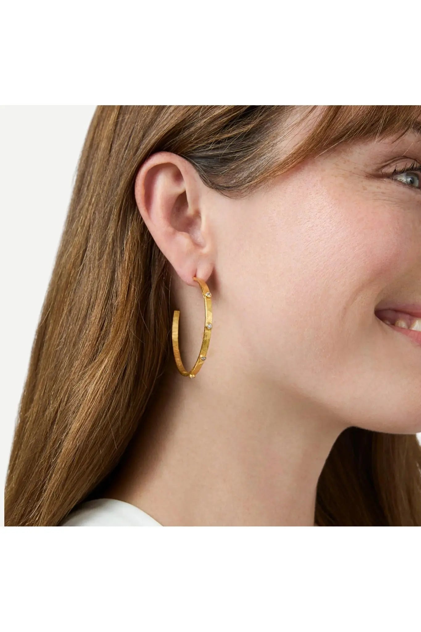 A lightly hammered hoop with gemstone accents goes with whatever you want to wear.