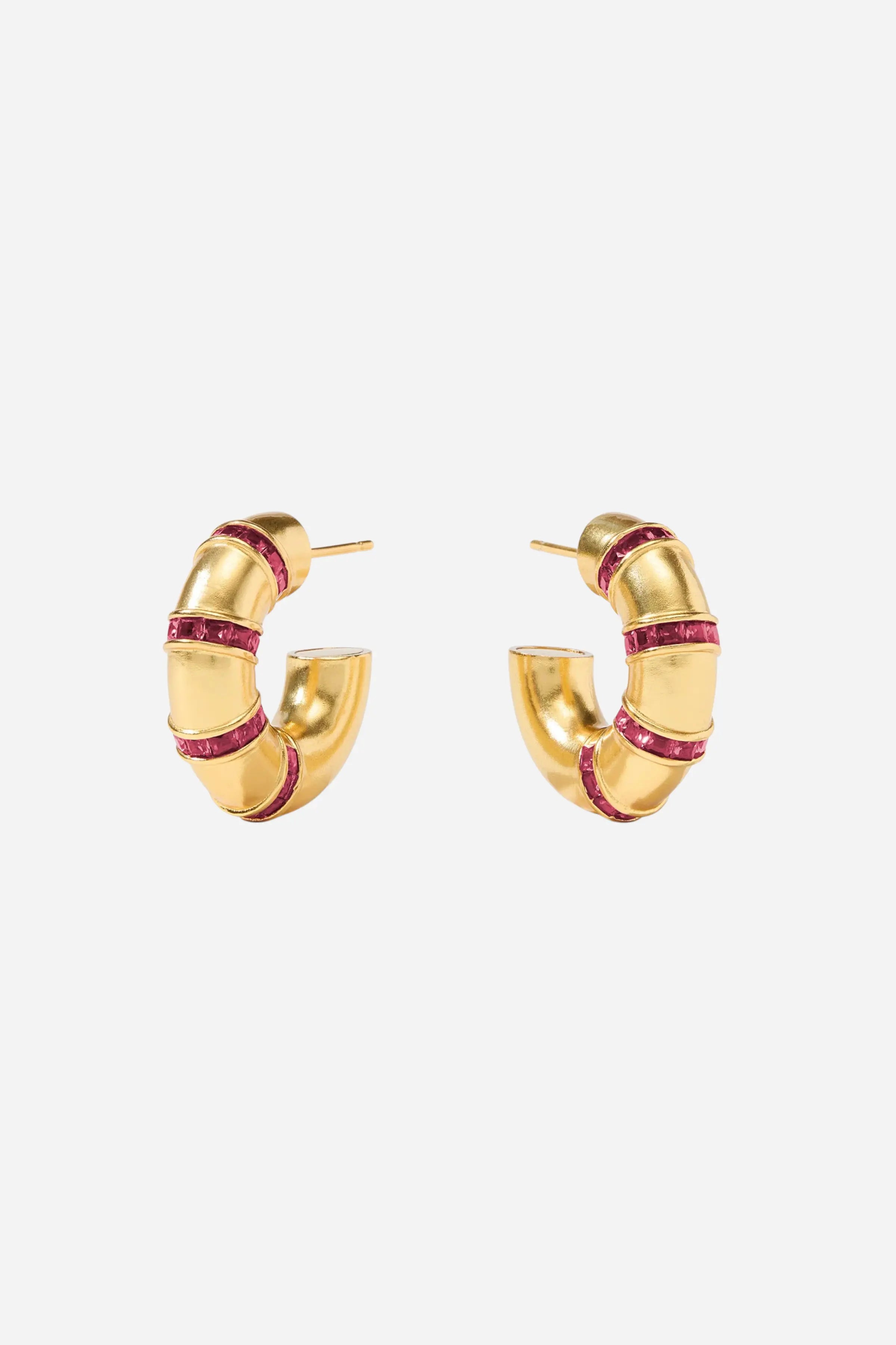 Julie Vos Gold Valentine Hoop Earring, Ruby Red