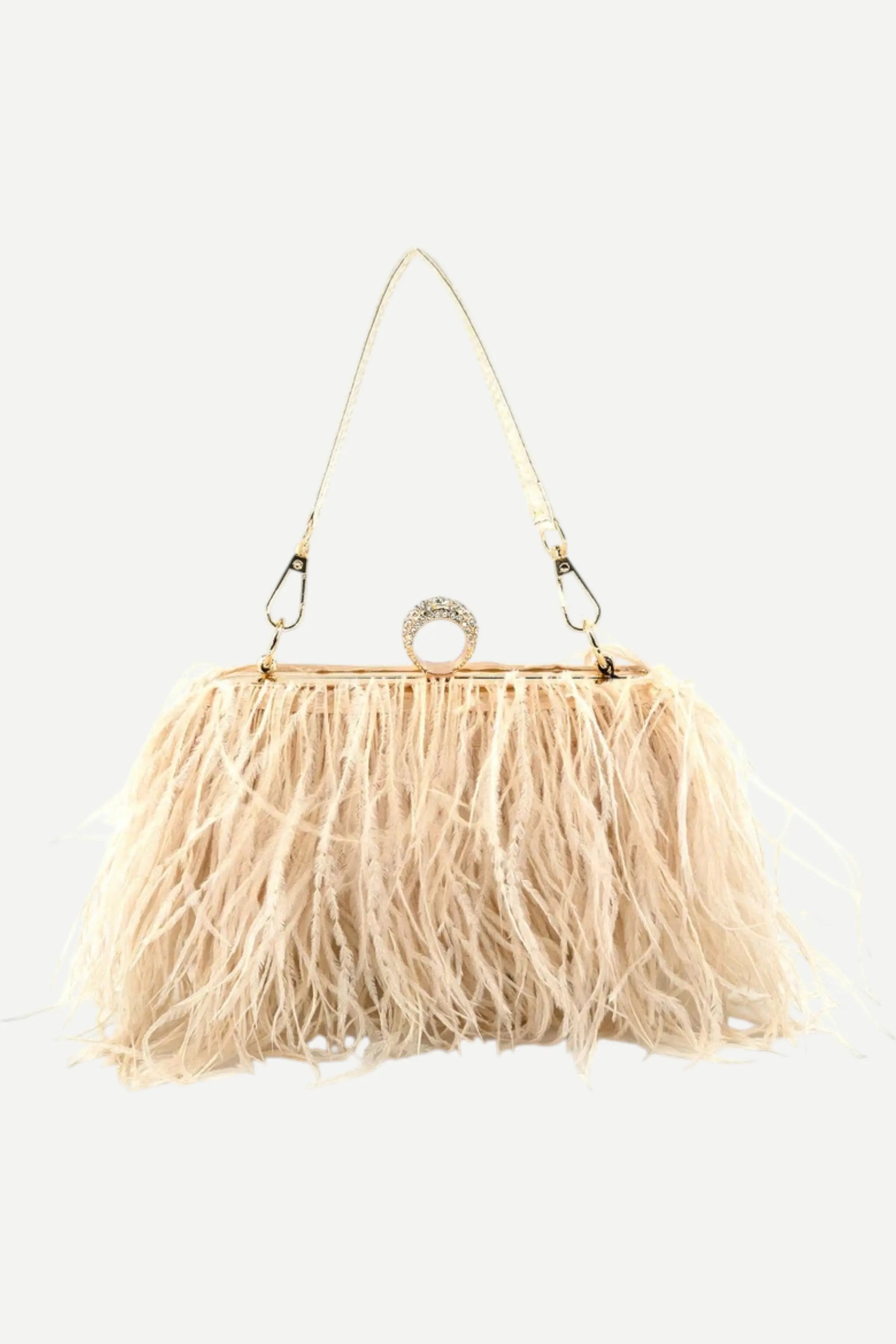 BC Bags Feathers Evening Clutch Handbag, Gold