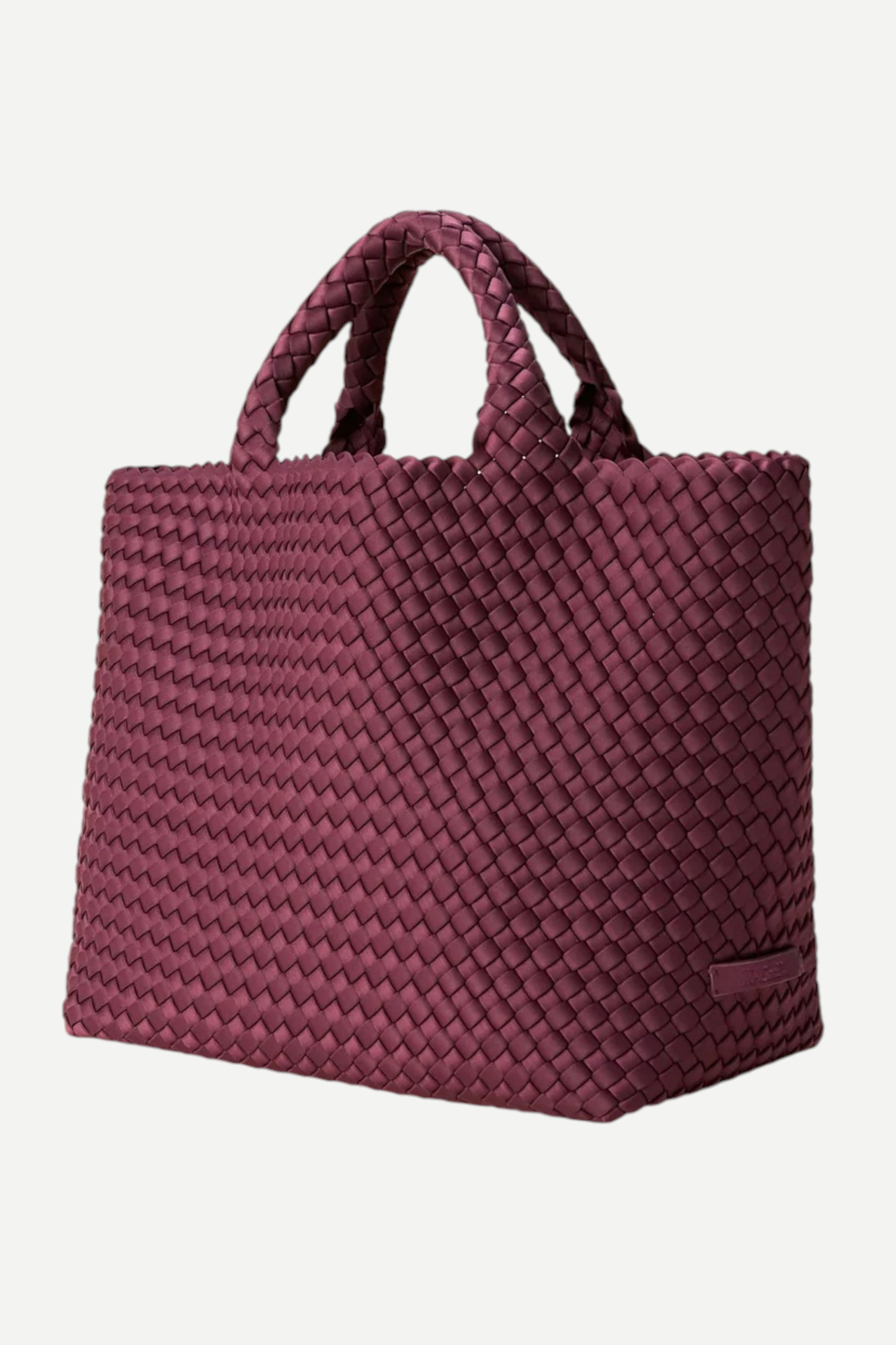 Handwoven from our signature neoprene, the St. Barths Medium Tote in rich burgundy is a spacious, lightweight everyday tote bag—the perfect carryall for work, weekend, and everything in between.