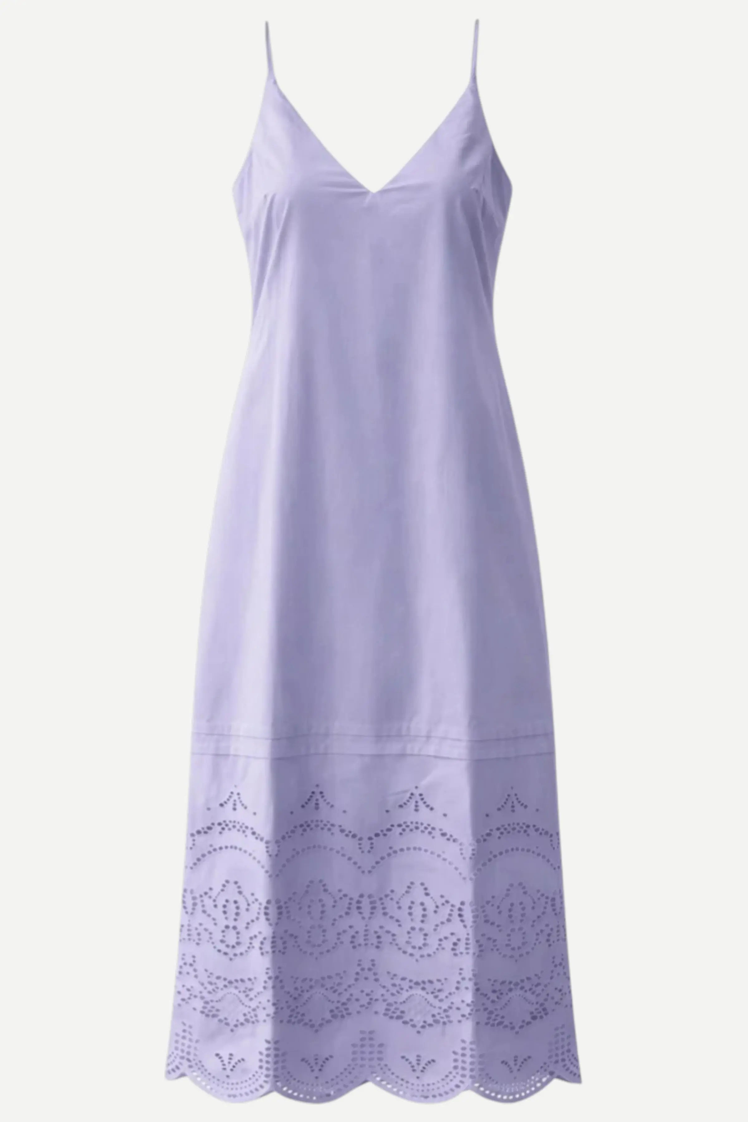 The Zane Midi is a refined slip-style silhouette featuring a clean V-neckline and an effortless, straight fit. Designed for understated elegance, it’s finished with delicate eyelet detailing and a scalloped hem for a subtle yet distinctive touch.