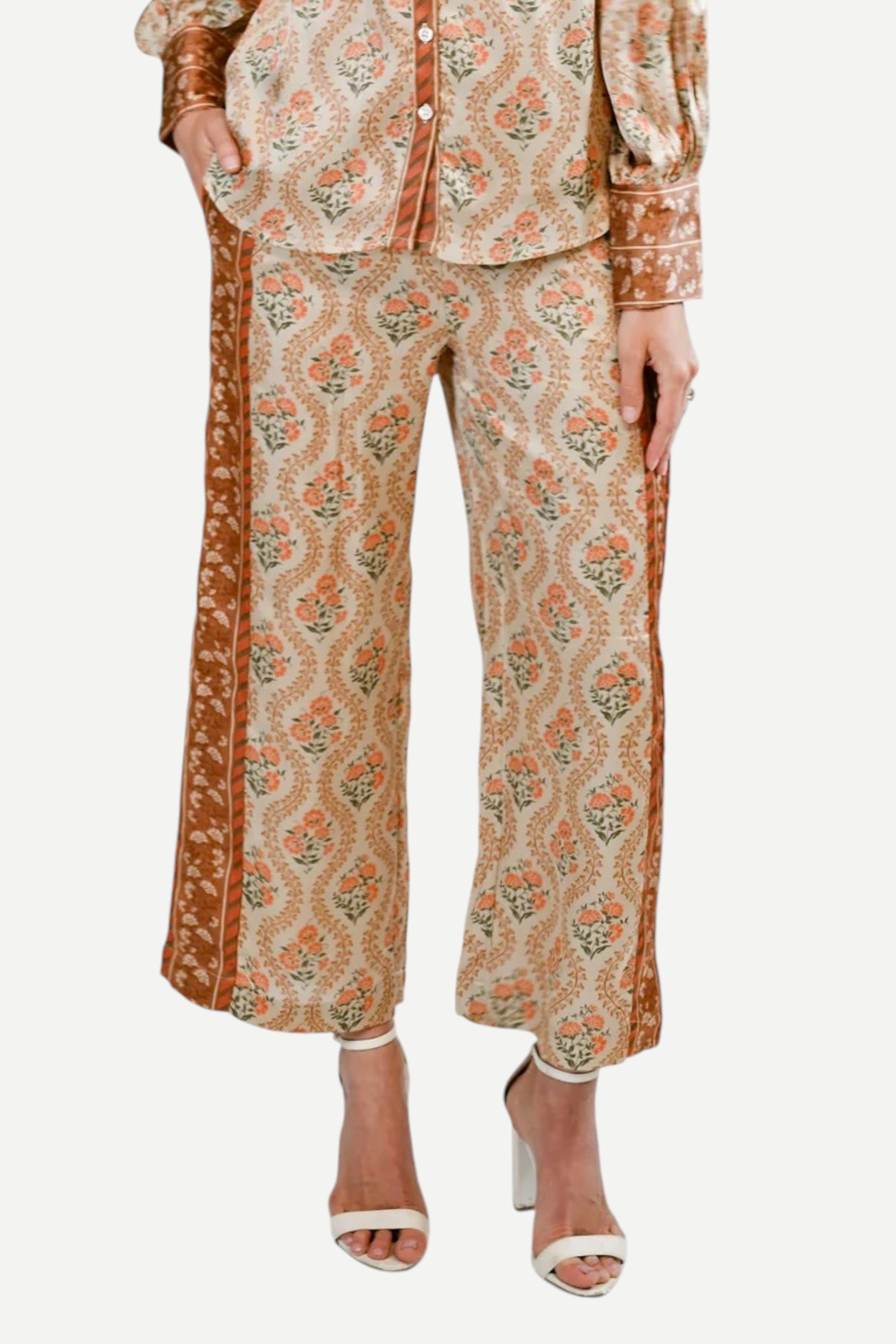 The Zara Pant features trim down the side and a comfortable wide leg. The elastic drawstring waist ensures a perfect fit, making it the perfect companion to the Zara Blouse or Luna Scarf for a coordinated look.